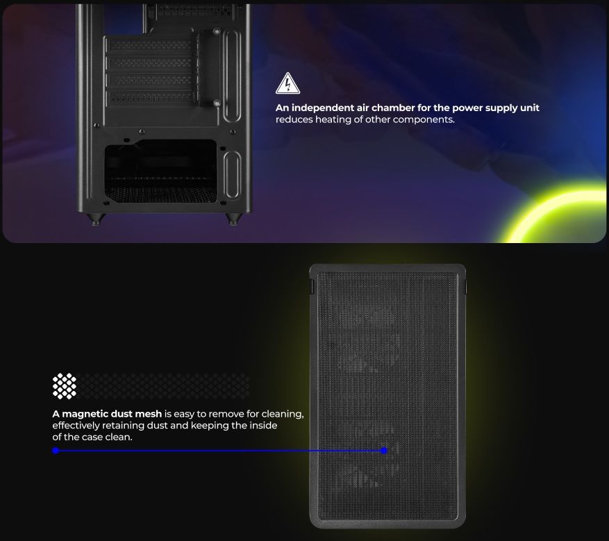 Lumi GM-01MAB Mesh Black: Midi Tower, MicroATX/ITX, 3 x 120 mm ARGB Fans Included, 120 mm Rear& 280 mm Top Radiator Support, Tempered Glass